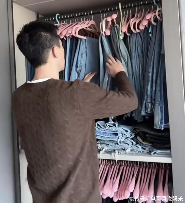 王灿2025年12月在社交平台分享了一段与杜淳一起搭配衣服的日常内容,这段视频直接把家里的衣帽间暴露在镜头前。杜淳负责帮忙挑选裤子和上衣,王灿站在旁边记录,整个过程自然流畅,却意外让网友把注意力集中在那些柜子里的存货上。衣帽间面积很大,按功能分区明确,收纳方式也很有条理,但物品数量之多已经超出普通家庭范畴,尤其是牛仔裤部分,直接成了全网讨论焦点。